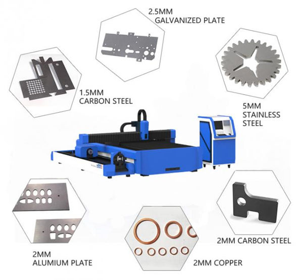 * خاص طور پر 0.5-6 ملی میٹر کاربن اسٹیل ، 0.5-5 ملی میٹر اسٹینلیس سٹیل ، جستی سٹیل ، الیکٹرویلیٹک زنک لیپت اسٹیل شیٹ ، سلکان اسٹیل اور دیگر اقسام کی پتلی دھات کی چادریں کاٹنے کے لئے استعمال کیا جاتا ہے۔ 1000W 3 ملی میٹر ایلومینیم اور 2 ملی میٹر تانبے کاٹا سکتا ہے۔